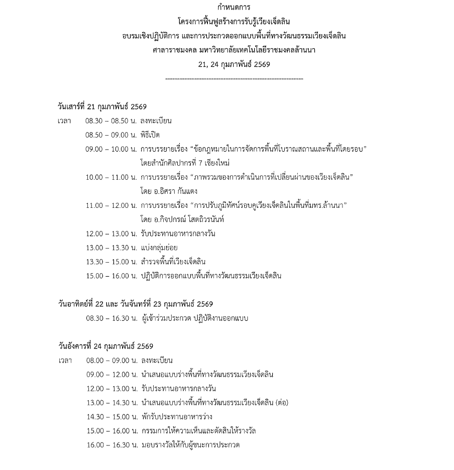 โครงการฟื้นฟูสร้างการรับรู้เวียงเจ็ดลิน อบรมเชิงปฏิบัติการและการประกวดออกแบบพื้นที่ทางวัฒนธรรมเวียงเจ็ดลิน